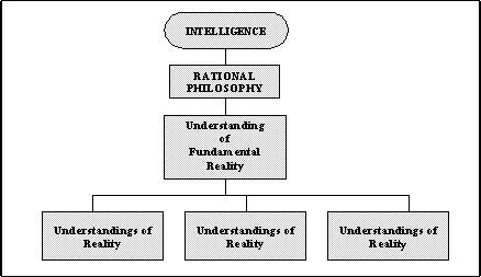 La Lumière de la Raison Rene Descartes ont défini l'intellect rationnel comme étant solidement basé sur la vérité et connaissance mais les méthodes cartésiennes pour l'accomplissement de la rationalité intellectuelle sont, cependant, impraticable et les méthodes correctes sont définis par épistémologie scientifique. La vérité est donnée par la Lumière Intérieure La réalité intellectuelle rationnelle est le mind de Dieu et l'intellect rationnel traite directement de la réalité fondamentale et pas par les systèmes théoriques intermédiaires ou d'autres constructions idéales. La langue du dialogue est la signification qui est le langage commun de la réalité. L'étudiant apprend directement de la réalité et son understanding est empirique. Toutes autres divisions normales de réalité sont non pertinentes à la vérité intellectuelle à ce niveau de l'enquête. La source créatrice de connaissance, connue de la philosophie comme la lumière de raison, traite sincèrement des intellects honnêtes. L'essai formel de la connaissance subjective n'est pas nécessaire car la lumière intérieure, comme le professeur, donnera toutes les deux des understandings vrais, et corrigent des understandings incorrects ou inachevés précédemment formés. La connaissance donnée par la lumière de la raison, considérée en tant qu'illumination divine, est absolument vraie. Il n'y a aucune plus Haute Autorité que Dieu elle-même. Le développement de l'intellect par la lumière intérieure est au commencement dans la direction de l'understanding de la réalité finale et unifiée. La raison est que cet understanding fournit les moyens d'intégrer l'intellect, qui fournit la base pour le développement véridique ultérieur. Le développement de l'understanding par la lumière, une fois poursuivi assez loin, permet à l'intellect individuel d'acquérir le statut experte au sujet de connaissance de la réalité finale. C'est le cas tous les deux pour le philosophe, le théologien, et le chercheur après la vérité. La Reconstruction de l'intellect Ce développement, sur la base d'un understanding de réalité fondamentale, implique la reconstruction de l'intellect, et offre une position de la vérité dont pour regarder les understandings existants et les nouvelles expériences. L'intellect reconstruit peut encore contenir des erreurs dues aux jugements faux précédents, mais ceux-ci apparaissent maintenant comme contradictions, et peuvent être traités en conséquence. L'intellect reconstruit et unifié permet l'intégration de tous les expériences et les understandings. Ceci permet à tous understandings de l'individu d'être réduits à un schéma commun. Le diagramme 5.2.1 montre la structure de l'intellect compartimenté. C'est l'état pré-rationnel de l'intellect et on se rappellera le que chaque compartiment de l'intellect ne peut pas communiquer avec d'autres compartiments. Problèmes qui entrainent quelques compartiments doivent être traités plutôt insuffisamment par un seul compartiment, ou doivent être rejetés en tant que trop dur, ou sans signification ou pour quelque raison qui peut être accepté.