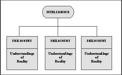 Philosophie Subjective Selon Piaget, la philosophie subjective est formée dans l'enfance, quand l'intellect se développant réalise la capacité de coordonner des moyens et des extrémités. Elle se développe dans la maturité à un état proportionné pour faire face au monde adulte. La philosophie subjective rassemble l'understanding de lui-meme et l'understanding donnés par expérience de réalité subjective. La philosophie subjective fournit les moyens de commander d'expérience actuelle, et d' influencer l'expérience future, et elle permet l'individu d'évoluer un ensemble de buts et d'objectifs. La forme est UNDERSTANDING GÉNÉRAL DE RÉALITÉ + UNDERSTANDING DE SOI = PHILOSOPHIE SUBJECTIVE Tous les individus ont une philosophie, ou des philosophies, des sortes, bien que ces constructions ne soient pas nécessairement identifiées en tant que tels, ni sont elles ont soumis à l'examen critique appliqué à un système philosophique objectif. L'understanding de soi est une influence importante sur la philosophie subjective. L'understanding de l'individu comme corps physique avec un mind produit la philosophie matérialiste. L'understanding de l'individu comme un mind avec un corps physique produit le type cartésien de philosophie rationnelle ou idéaliste. D'une manière générale, l'understanding matérialiste est le cas normal pour intellects non mûr, et d'autres intellects insuffisamment développés, et considérations philosophiques dans la maturité mènent à l'understanding rationnel. La philosophie subjective de l'individu est un understanding et a un modèle de réalité et un ensemble de règles qui régissent l'opération de ce modèle. La réalité, avec laquelle l'individu est concerné, n'est pas la réalité de la connaissance objective mais la réalité subjective de l'expérience personnelle. L'enfant de bonne éducation, des parents intelligents, riches et adorants a un ensemble d'expériences tres différent de l'enfant pauvre d'une famille cassée dans les taudis de l'intérieur de la ville. Les understandings de l'expérience de la réalité des deux auraient peu de similitude même si ils vivaient dans la même ville. Leurs philosophies de réalité subjective, en conséquence, définiraient tres différent ensembles de possibilités. La philosophie de l'individu intègre les ensembles des understandings d'expérience, personnelle et externe, et les modèles de la réalité sur lesquels ils sont basés. La philosophie subjective fonctionne d'une façon semblable à une théorie scientifique de réalité. Le modèle philosophique est le niveau le plus haut de l'explication de la réalité subjective. Philosophies Multiples Peut-être, l'individu ne peut pas intégrer tous ses understandings dans une philosophie et en conséquence est forcé de travailler avec des philosophies multiples. La situation commune est que l'intellect est intérieurement divisé en understandings basés sur des réalités incompatibles. Le degré de fragmentation dépend en partie de l'étape de la maturité atteinte et en partie sur le but de l'individu de progresser au delà du degré d'intégration des understandings donné comme le résultat d'éducation. Le diagramme 1.3.1 montre la structure de base de l'intellect intégré. L'intelligence ou l'esprit, connu de elle-même en tant que « moi », voit l'univers de l'expérience par l'understanding philosophique qui modèle ces caracteristiques de l'ensemble de modèles de réalité qui sont considérés par l'individu comme significatifs. L'understanding philosophique ne remplace pas l'ensemble de modèles de réalité qui continuent à fonctionner et se développer dans le rapport normal avec l'expérience.